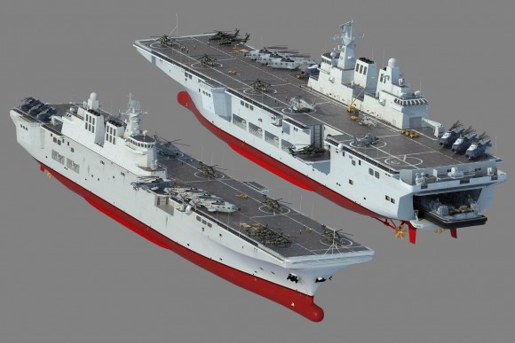 Imagens da maquete 3D de um porta-helicópteros de assalto anfíbio postadas, na quarta-feira 22 de abril, em páginas da web que tratam de assuntos militares chineses, levaram analistas ocidentais a concluir que a Marinha da China prepara a construção de uma nova classe de navios de projeção de força – de no mínimo seis unidades –, denominada Tipo 081, de valor comparável aos barcos da famosa classe francesa Mistral.